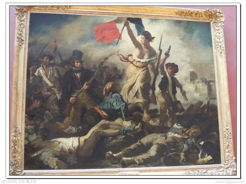 德拉克瓦的"自由引導人民",畫中的希臘的自由女神,胸部裸露,右手揮舞象徵法國大革命的紅白藍三色旗,左手拿著帶刺刀的火槍,號召身後的人民起來革命。