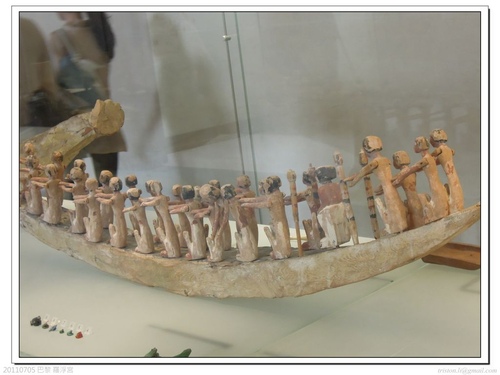 埃及的船隻模型,是給亡者在另一世界使用的,手上原本應該是有握槳的,不過可能都年代久遠,爛掉了吧.