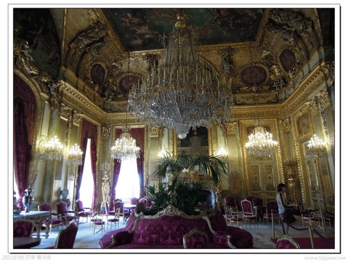 我們今天在羅浮宮預計待七小時,所以依參觀羅浮宮的路線,是由德儂宮(PAVILLON DENON)地下夾層進去,經一樓的馬術廳,二樓的大迴廊進花神廳(這裡就有蒙娜麗莎),然後由樓梯(勝利女神)轉到緒利宮(Pavillon Sully)一樓南側(米羅的維納斯),再來轉到地下夾層看中世紀的羅浮宮,這邊走完大概要三個小時了吧!吃完中餐,再進到黎希留宮(Pavillon Richelieu)的馬利中庭((Cour Marly),這裡有相當多美麗的雕刻可以慢慢看,把黎希留宮(Pavillon Richelieu)一樓走過一圈後,再回到緒利宮(Pavillon Sully)一樓的北側部份補足亞述王國的文物區,這是我們一般台灣人較少看到的部份。再來就看緒利宮(Pavillon Sully)二樓的拿破崙三世套房,最後,還有黎希留宮(Pavillon Richelieu)三樓和緒利宮(Pavillon Sully)三樓的的近代歐洲繪畫,最後去高貴的gift shop宣揚國威一下,這樣一圈下來,花了大約我們快八個小時,果然在精神上和體力上都得到大大的昇華。