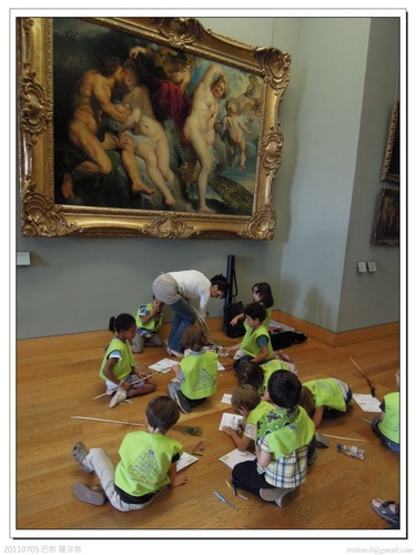 一群戶外教學的幼稚園小朋友,臨摹起羅浮宮的名畫可一點都不馬虎