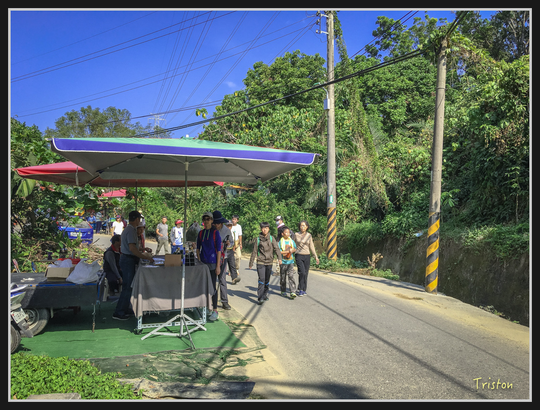 順著歌聲,走上公路,是個小小的村落,當地人也順著人潮,擺了攤子,賣些當地的野菜