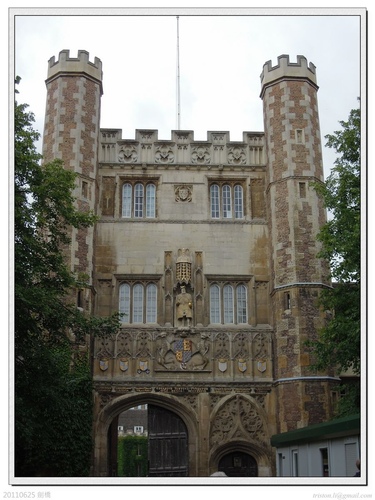 三一學院正門,如果仔細看的話,可以發現亨利八世右手上拿的不是權杖,被學生換成一枝椅腳