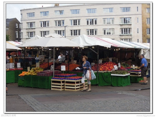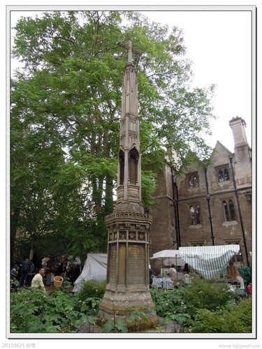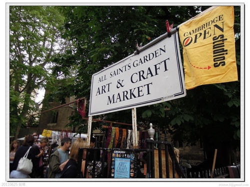 走到聖約翰學院前的街邊有一個小公園,剛好今天有一個小市集,其實我們是要走進去找廁所的啦!英國找不太到廁所吔!