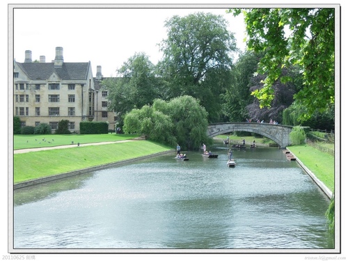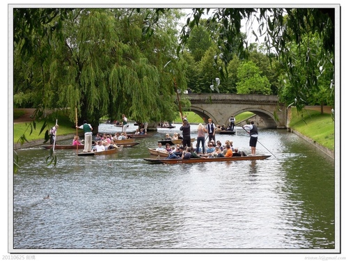 康河上遊船的人真多,好像下餃子一樣,失去了點悠然自得的美感,劍橋的觀光客好多,真懷疑這樣的大學城可要如何念書做研究才好。感覺這條河應該是岸上美一點,當然啦!我們也沒搭船嘛!