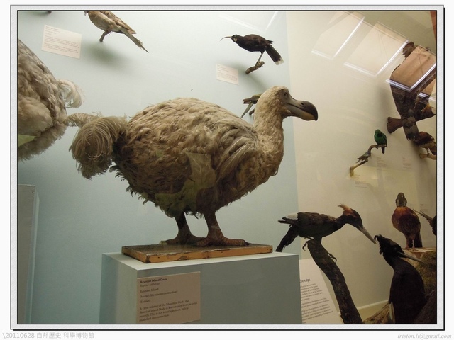 己經滅絕的度度鳥,西元1598年被荷蘭人在模里西斯島發現,不過不到一百年,就因人類活動而滅絕!有很多人說,如果不是歐洲人的保護,或許許多文明遺址,例如埃及和中國的古文物,早就在後來的動亂中滅絕了,因而合理化西方帝國主義的劫掠行為,不過反過來想,如果不是西方帝國主義的介入和挑撥,許多文明也不會陷入動亂,甚至像度度鳥而滅絕..