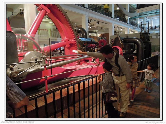 這裡一樓就展示了令人印象深刻的各式蒸汽驅動的機械,英國不愧是工業革命的發源地,即使現今的發展以服務業為主,卻仍然可以看見其深厚工業基礎的一面,一邊觀賞這些展示,不由得感觸到其實大部分具創新的發展仍然得建立於深厚的科學基礎上,絕非僅僅是一時的天馬行空而已。