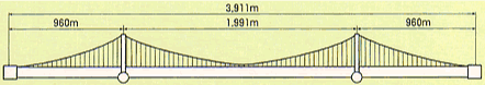 全長3911公尺,橋墩跨距1991公尺