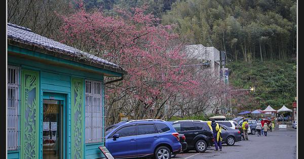 早上走楓林步道,下午到瀑布區走走,行經停車場,這裡八重緋寒櫻成排,特別好拍