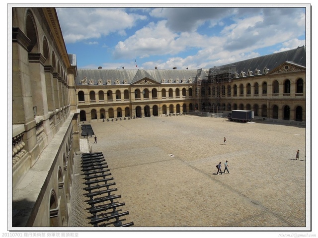 出了羅丹美術館,走幾步路,就到榮軍院(Hôtel des Invalides)了,榮軍院有些書把它翻成傷兵院,不過我看法國自己是翻成榮軍院,而且”榮軍”比”傷兵”聽起來對因負傷休養的軍人們也比較尊重,所以還是稱為榮軍院好了.