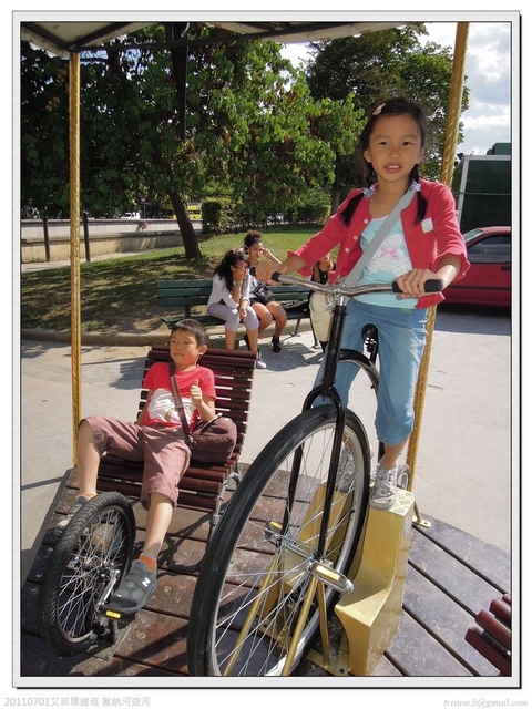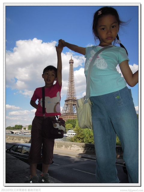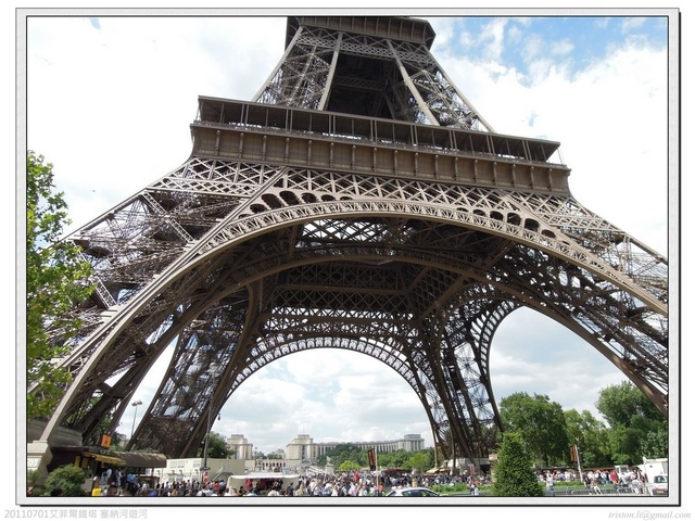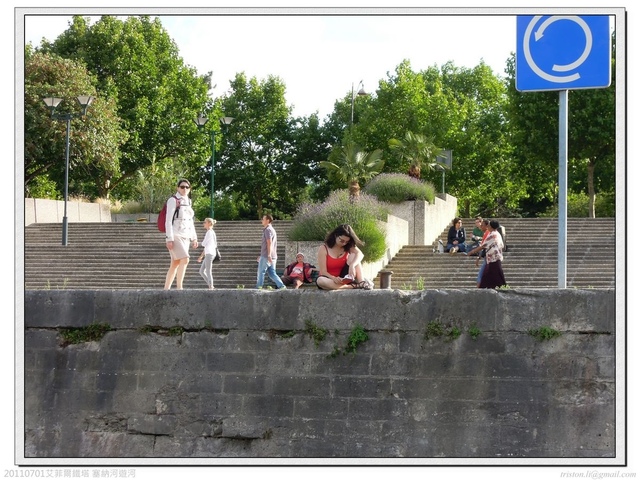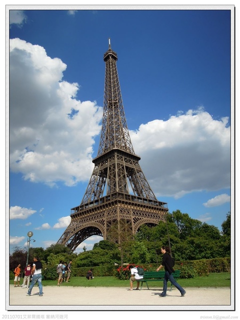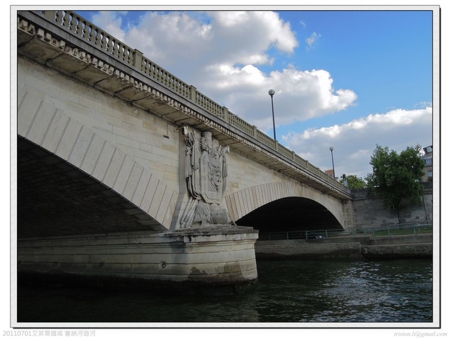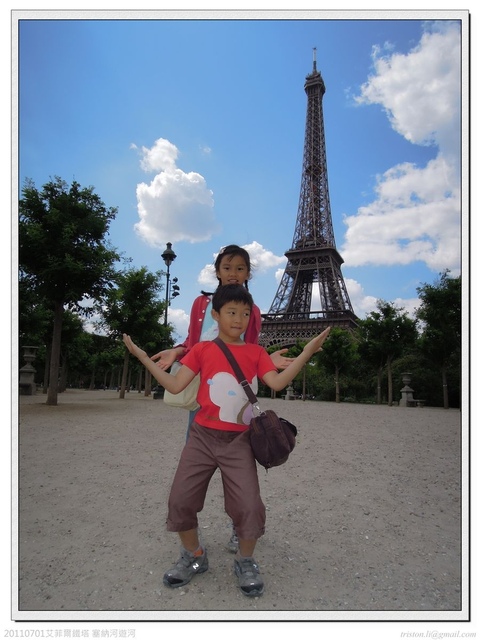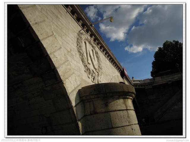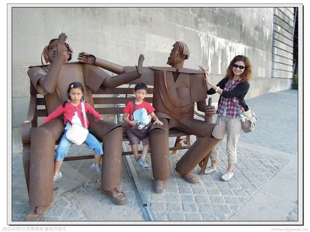 由比爾海肯橋繞道河的對岸,再由夏佑宮走回鐵塔下方,就準備搭船遊塞納河..後來看資料才知道旅行團一般會到夏佑宮的投卡德侯公園拍鐵塔,反倒是我們是自助行,因為覺得夏佑宮不太漂亮,所以就忽略沒安排,所以錯失了許多好角度的相片...
