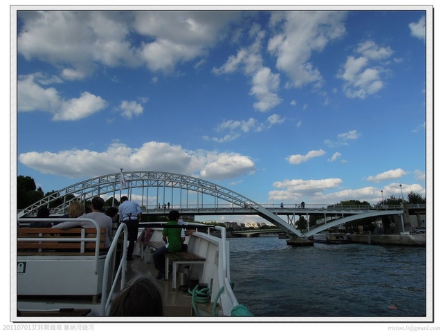 從鐵塔下的塞納河就可以搭遊塞納河的船,船費忘了,記得是快20歐元/人...船逆流而上,