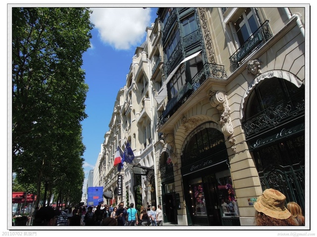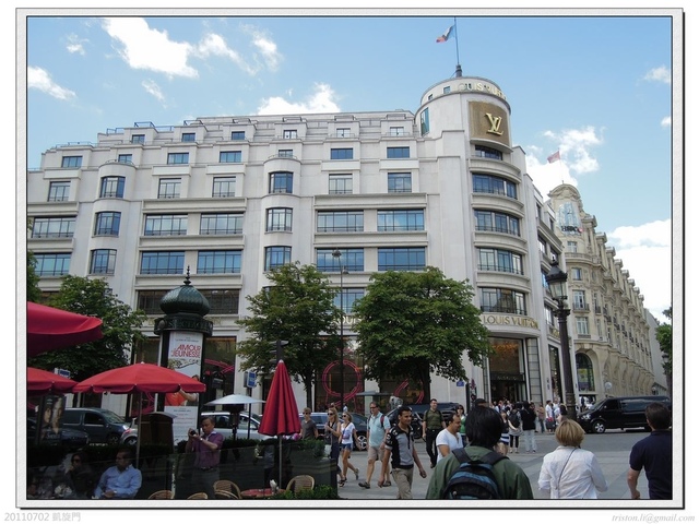 前面就是香榭麗舍大道101號LV的總部!!出國前就耳聞大名,當然要去走一走,不過店內不能拍照,保全雖然著斯文的西裝,但是看起來很兇悍,所以還是乖一點!從店裡服務人員的國籍配置大約就可以看出各國的消費實力了,現在大概有一半的店員都是華裔,進去宣揚國威的陸客當然也不少囉!