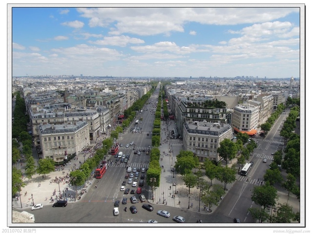 以凱旋門為中心,向四周放射出的十二條大道,在這裡俯瞰巴黎,可以感受到巴黎雄偉,獨特的景緻和當年拿破崙規劃市政的宏圖大略,