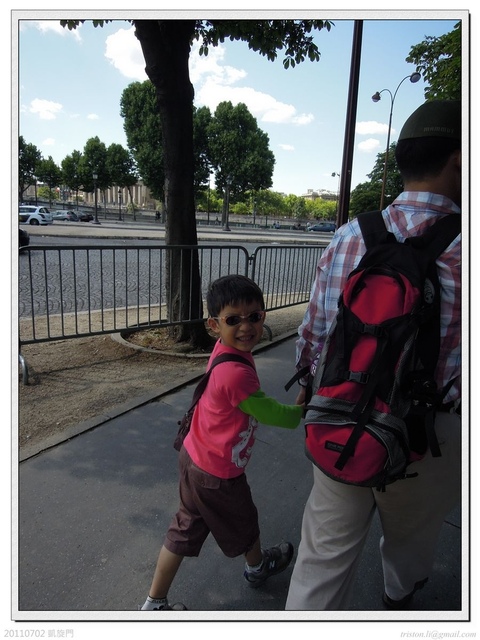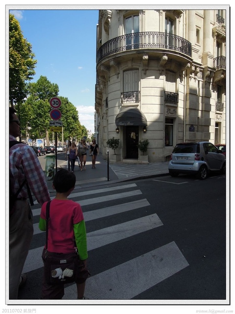 慢慢的往百貨公司的方向走,雖然我們只是觀光客,但真享受在巴黎街頭散步的感覺,行人道又寬又平,涼風徐徐,這是我要的旅行感覺..
