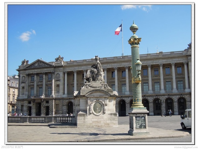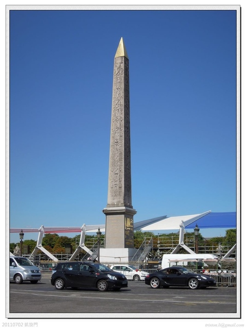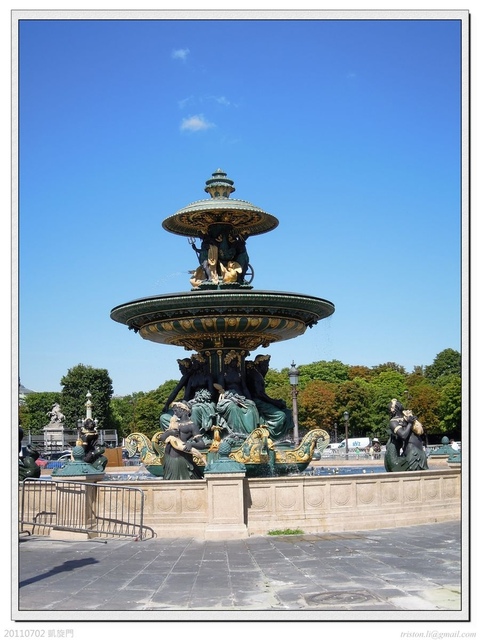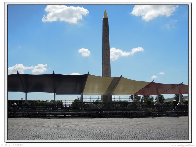 從協和廣場地鐵站出來,就可以看到1829年埃及送給法國的方尖碑,協和廣場是當年法國大革命時期用來砍人頭的行刑場所,大概就像中國的”午門”或”菜市口”之類的地方吧!以前殺人都是要熱熱鬧鬧,以收殺一儆百的效果嘛!只不過在這裡被砍過頭的人都大有來頭,包括國王路易十六和王后瑪麗·安托瓦內特,所以說法國人真的很大逆不道,連國王都拖出來砍了....但是或許是殺氣太重了吧!要立個超大的”石敢當”辟邪止煞!