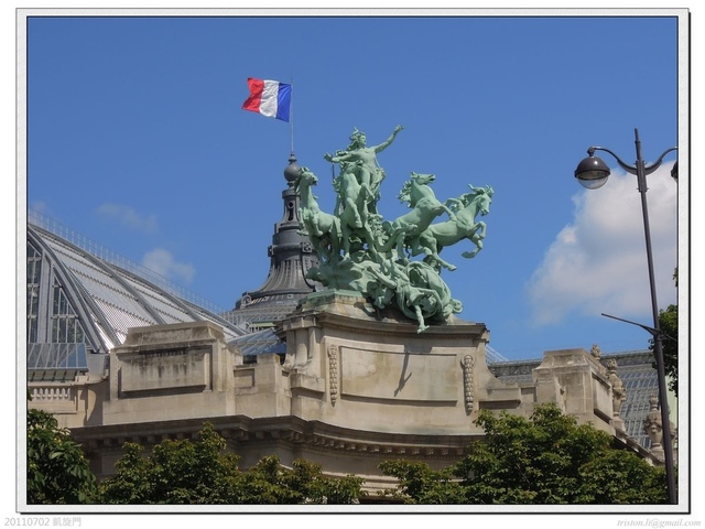 往香榭麗舍大道的十字路口豎立著法軍的銅像,法國雖然是個民主國家,卻無處不在宣揚國家的榮耀和自豪.那種充滿優越的自信心雖然令我們外國人不太舒服,卻又敬佩法國人對自己國家的熱愛和自身文化歷史的崇拜....