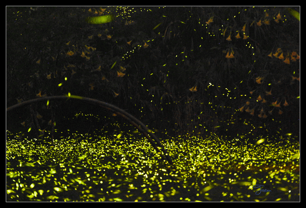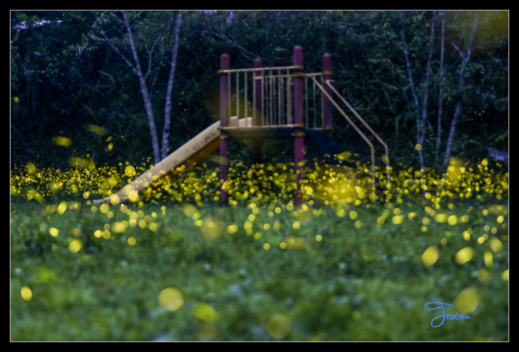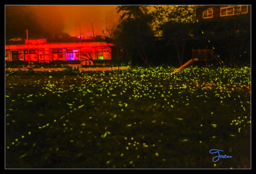 這一次為了創造螢火蟲滿天飛舞的效果,亂亂用了拍星軌的疊圖手法,連拍了3~5張,回來再用Startrail疊圖,果然滿地螢蟲如織....