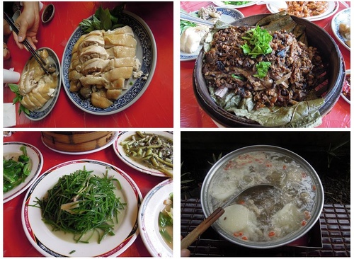我們其實訂的合菜價格不高,大人是3500,小人的3000,原本預期份量會少一點嘛!其中招牌的白斬雞頗受好評,還有芋頭糕,炸牛蒡和贈送的地瓜湯也很合味,份量超乎我們的想像,最後只好吃不完兜著走!