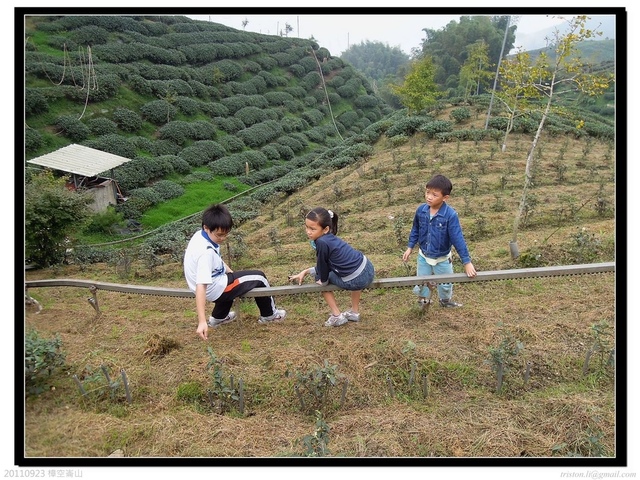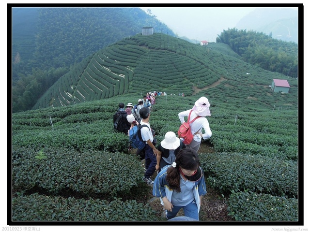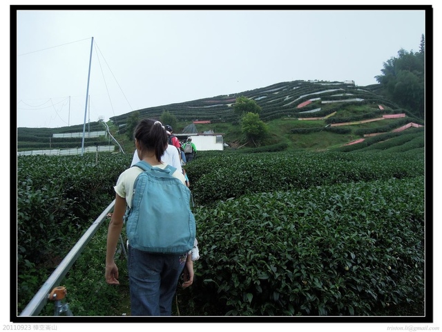 聽嚮導說,這一大片茶園也算是八卦茶園的延伸,開闊的茶園,讓人一陣心曠神怡,秋天正是出遊的好天氣,薄霧阻擋了太陽的熱度,走在這一片開闊地才不覺得炙熱。。
