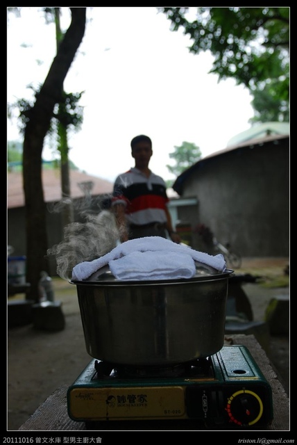 我的另一道重頭戲,煮飯,是用瓦斯爐煮的哦!一次煮廿人份,用火煮,很難吧!猜猜飄出的是米香還是焦味呢??
