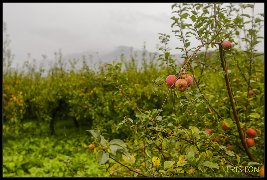 結實纍纍的蘋果樹,遠方導覽的告戒隨風傳來,這裡的蘋果比較貴,摘一顆罰三千元