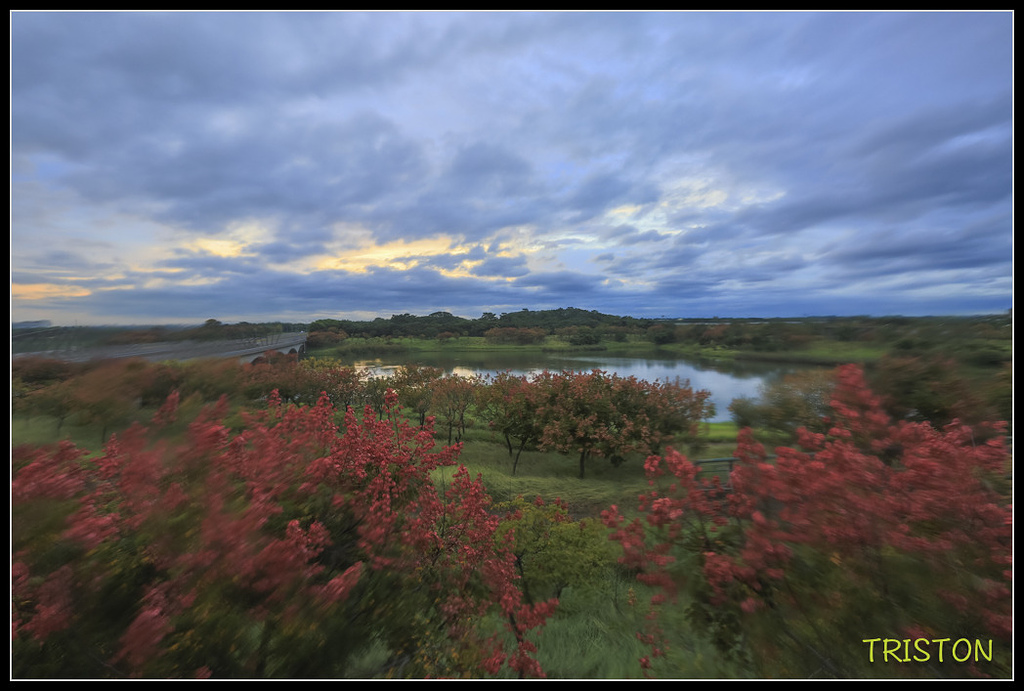 天氣仍不見好轉,只好放棄最後一天滑雪山莊行程下山。回程至南科順訪安定湖畔欒樹一景,只是此時鏡頭餘冷尚存,水氣結露,暫借友人相機一拍
