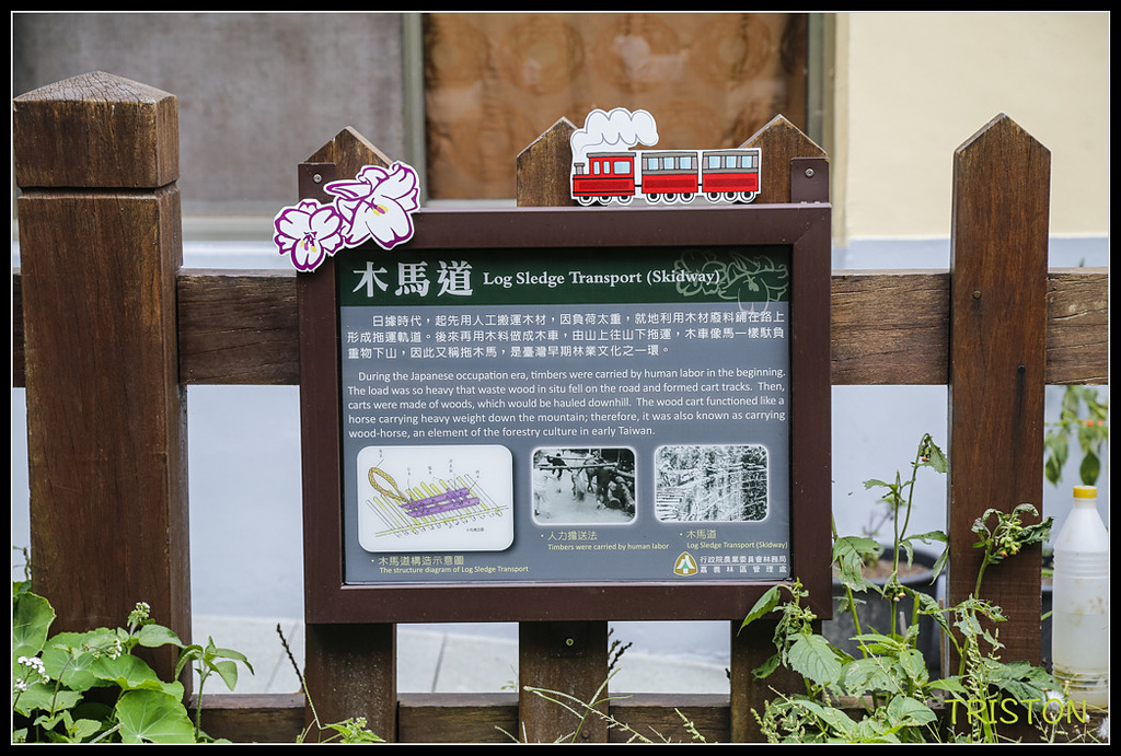 木馬道是早期人力運材的簡易工具,有點類似雪橇,就是把木材放在木馬道的木車上,由人工拖運下山