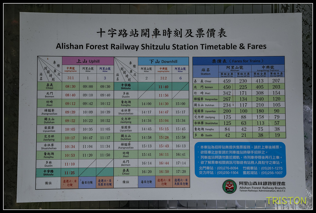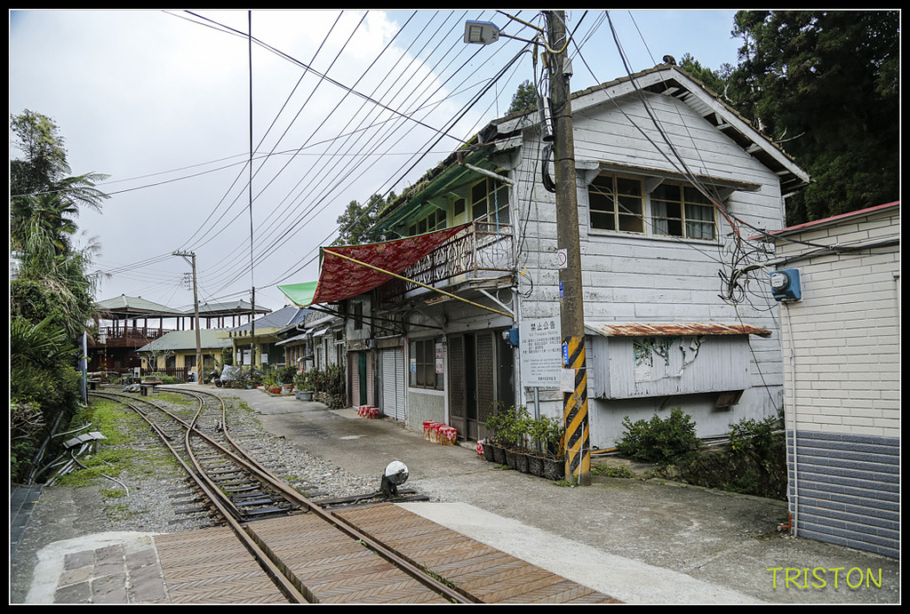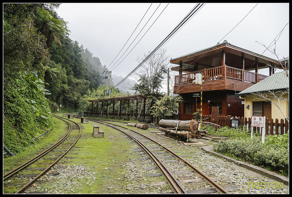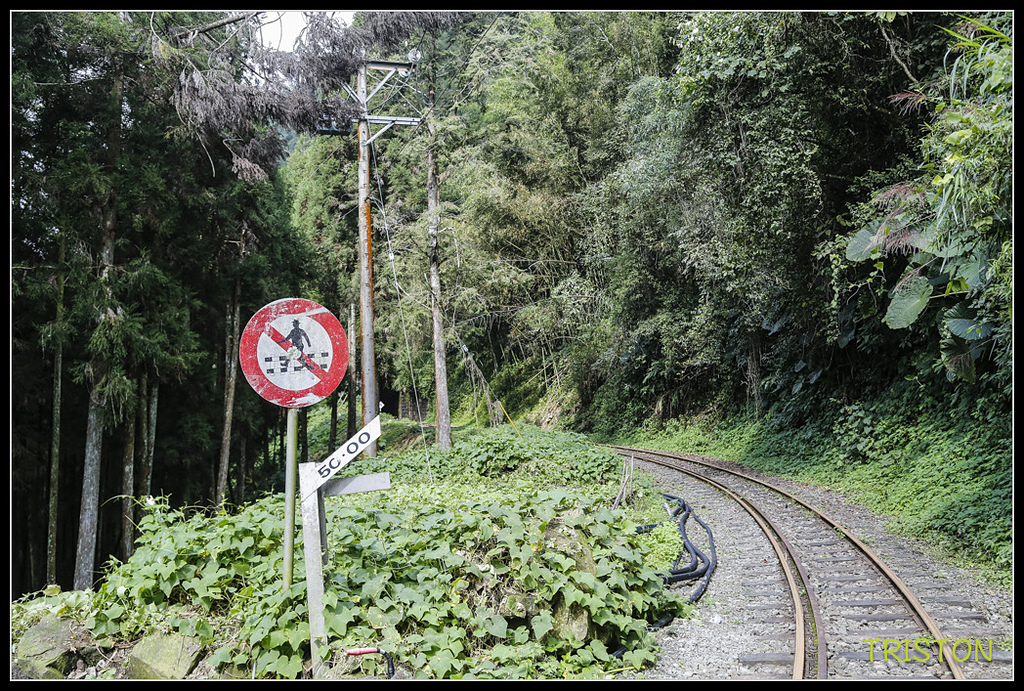 離開屏遮那和二萬平車站,沿著阿里山公路下行到十字路,十字路常常經過,卻從來沒上來十字路車站看過,沿著小路上來停好車,眼前即是阿里山森林鐵道,鐵道在這裡往東上行離開十字路車站,往屏遮那方向,但十字路--屏遮那這一段鐵道,因為杜鵑颱風造成路基崩塌,目前仍未通車..這一段路坡度指示標告訴我們這段坡度達50‰,一公里路上升50公尺海拔,看來不陡(阿里山森鐵的平均坡度為62.5‰),但目前所搭乘過的登山鐵道,日本靜岡井川線(千頭—井川),沿線最大縱坡度90‰(齒軌式列車),日本京都的鞍馬線最大縱坡度50‰。箱根登山線(箱根湯本—強羅),最大縱坡度80‰(齒軌式列車)