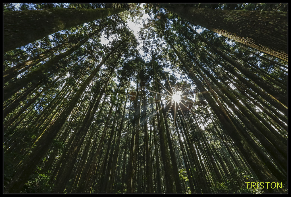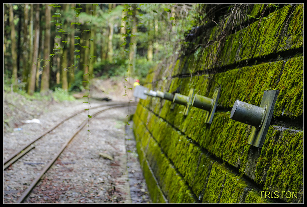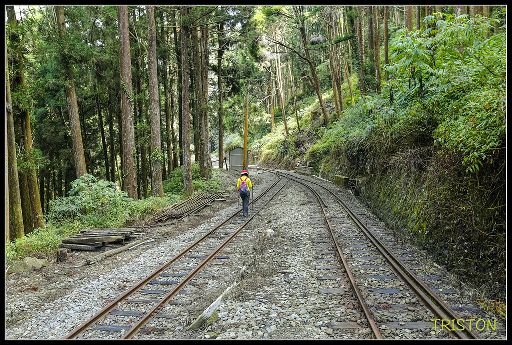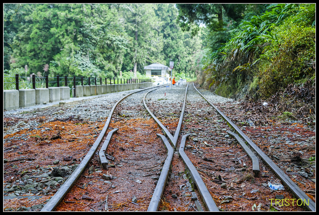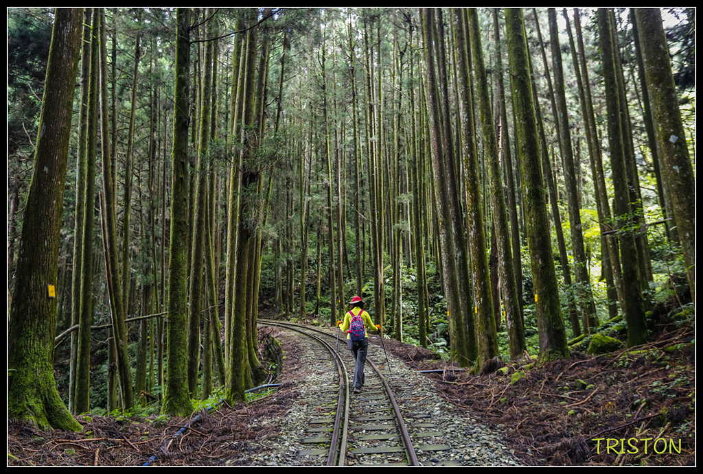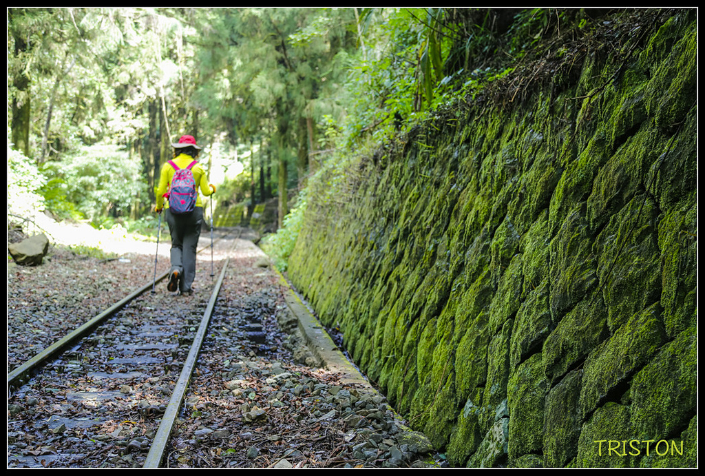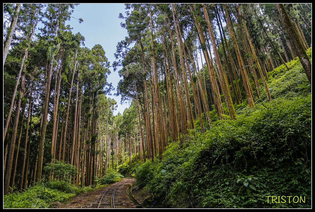 鐵道沿線柳杉林茂密,陽光灑落林間,此時一片靜謐,只聞蟲聲、風聲,和樹葉的沙沙作響!