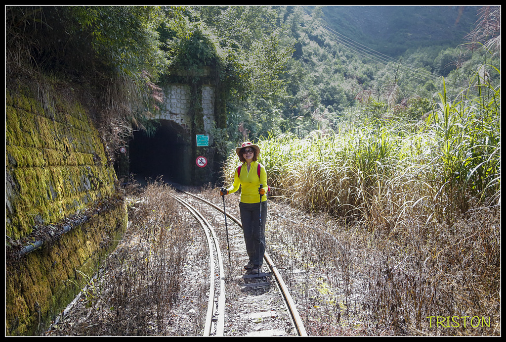 路至盡頭,左側有小路往46號屏遮那隧道,右側剛有有兩位山友下山,據說可直攻二萬平,這裡和二萬平高程近三百公尺,雖然很近,但鐵路前進,採取之字型登山線及SwitchBack折返式前進