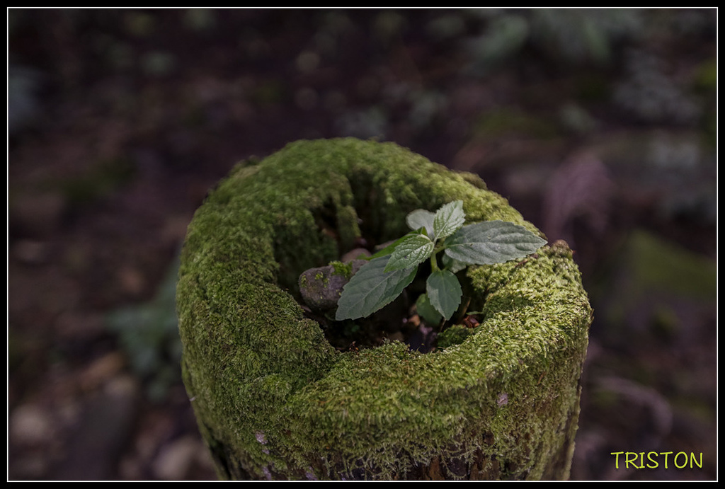 軌木上道釘鐵軌旁長了一朵灰樹花,據說灰樹花有輕微毒性,食用後毒性發作時人會手舞足蹈,故日文中稱灰樹花為舞茸