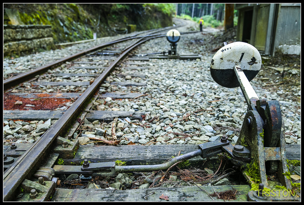 第一分道站房與轉轍器,阿里山森林鐵路在這裡進行折返式登山,也就是俗稱的"阿里山踫壁"。所謂第一分道站折返式登山,即是火車由屏遮那車站開上來,先到第一分道處停留,然後駕駛員再由原車頭移動到車尾,轉轍器將軌道切換上山路徑後,火車然後由車尾向前上山往二萬平車站前進,呈之字型登山路線。蘇昭旭教授常引用布袋和尚的偈語:手把青秧插滿田,低頭便見水中天;六根清淨方為道,退步原來是向前!退步原來是向前,在這裡一目了然!