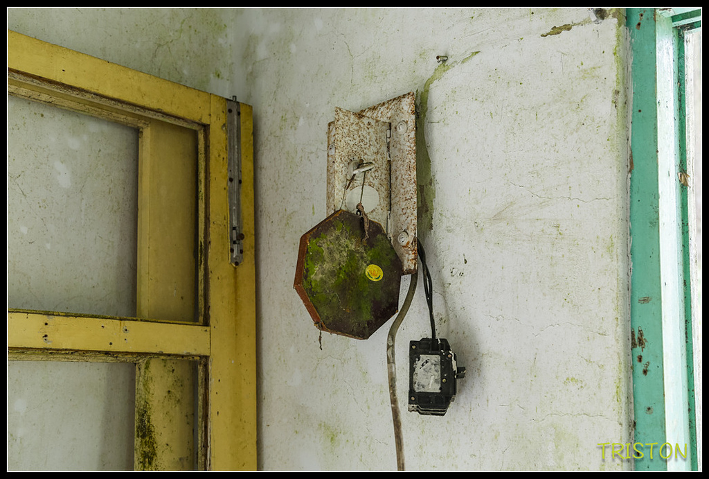 一旁電氣開關箱有一八卦鏡,或許山林獨居,霧起風蕭蕭,自有安心之道