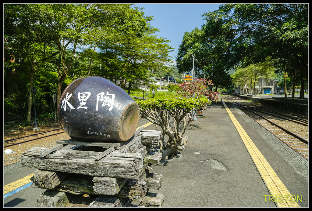 月台周圍以水里蛇窯所燒製的缸器做為裝飾,十分具有特色