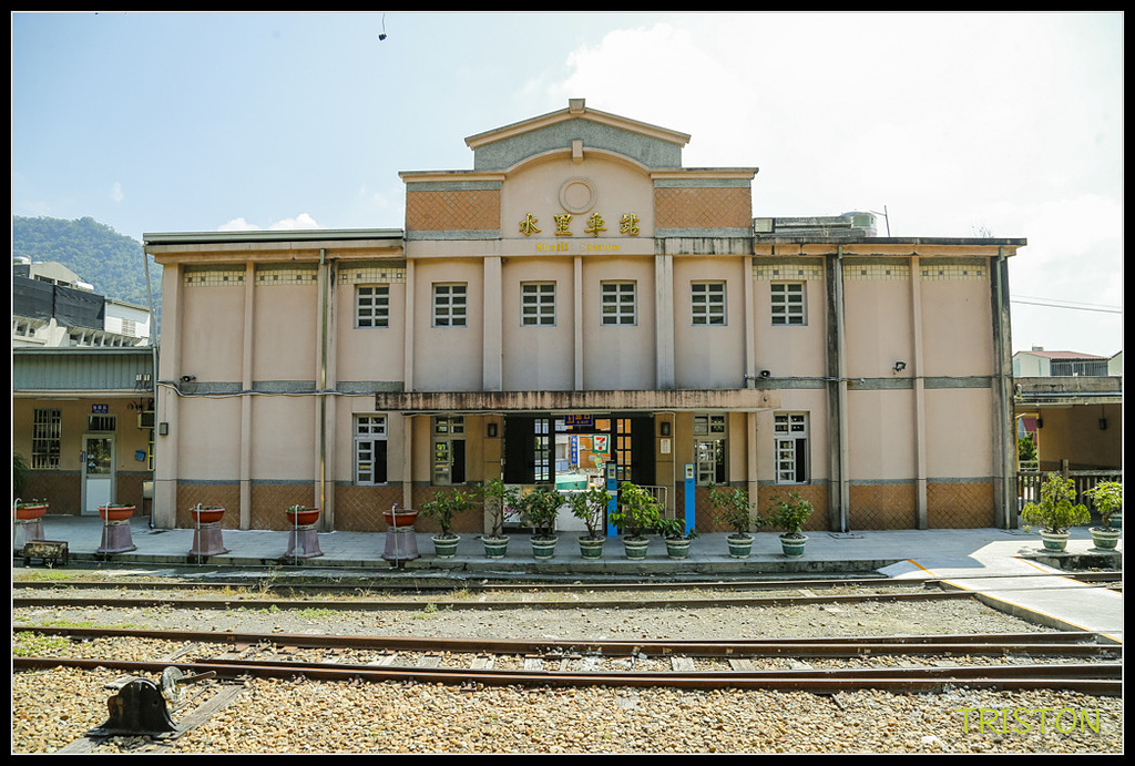 離開車埕,前往水里吃午餐,水里車站位於台灣南投縣水里鄉,是集集線全線最大的車站,第一次正面好好看水里車站,以為這不是車站,白色外觀帶點西洋風情的建築有點像國中的體育館!
