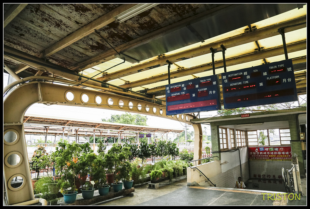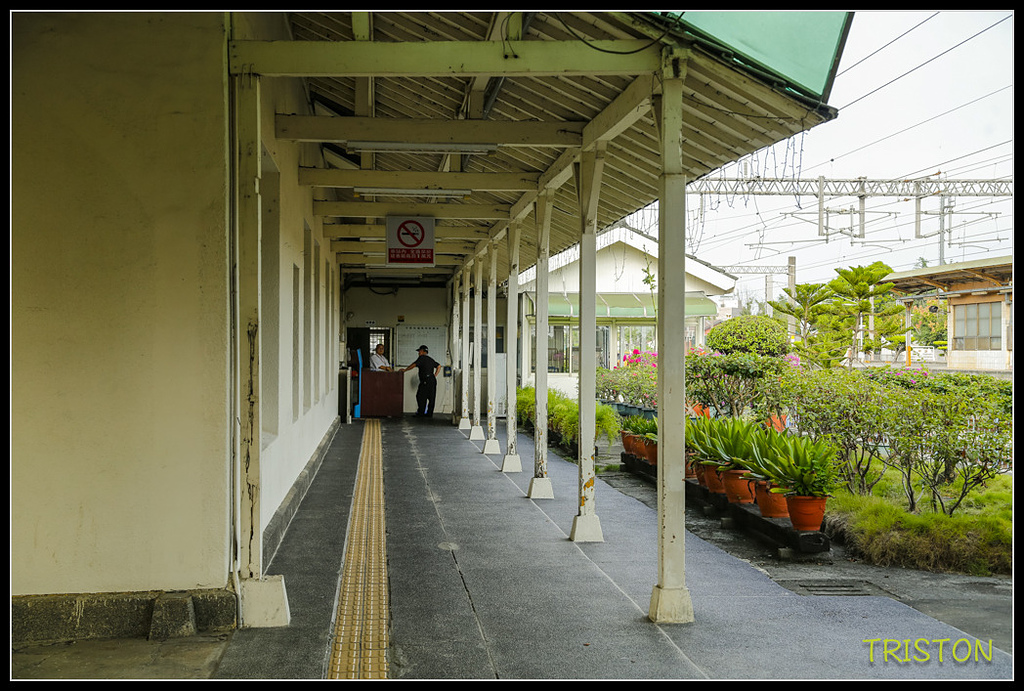 木製的Y型支架是日式車站很常用的支撐方式,在南部車站很常見,我拿著悠遊卡,嗶一聲,14元,當做月台票