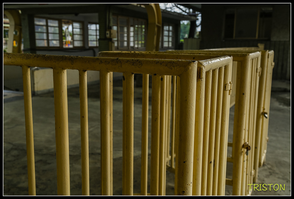 回到車站主體,可能來往乘客太少,車站人員也有限,出口沒開放,只有乳白色鐵格柵,因此得由正門進出