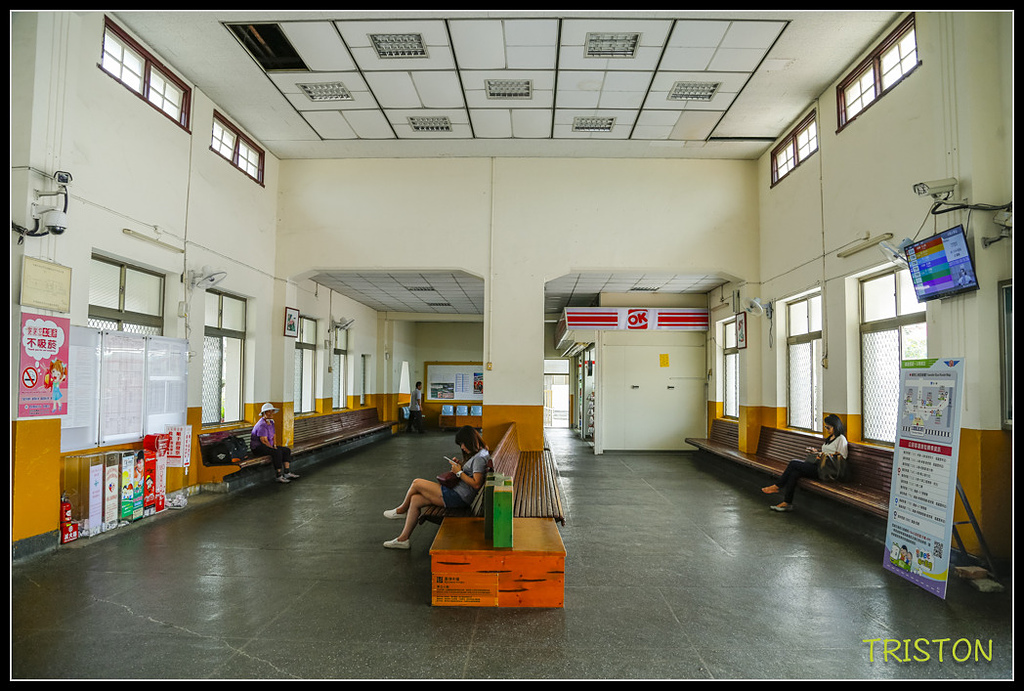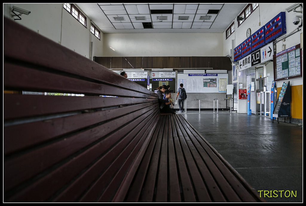 斗南車站候車大廳裡有好幾張木質長條座椅為其特色