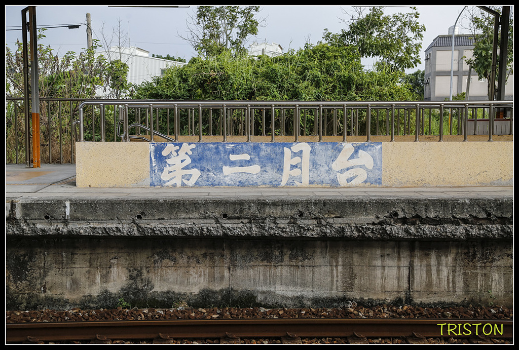 由第一月台望去第二月台,第二月台外草木叢生,與前站形成強烈對比。