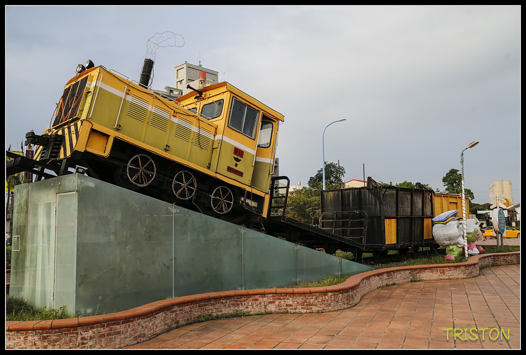 擺在廣場上的糖廠列車是溪州牌柴油機車,台糖溪州牌柴油機車可不是國產品,,美國賓夕法尼亞州布魯克維爾(Brookville)的布魯克維爾設備公司(Brookville Equipment Corporation)製造50輛的該型內燃機車,編號901~950,Brookville翻譯為「溪流旁的村莊」,而台糖當時的總部在彰化縣溪州鄉,因此被稱為「溪州牌」...編號910的糖鐵列車擺放在嘉義的蒜頭糖廠