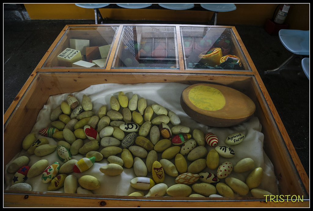 候車大廳裡有一個方桌,裡頭有些石頭的擺設,好像是滷蛋,斗南也是蛋的故鄉嗎?原來這是一旁他里霧文化園區農情木場(Agriwood factory)的作品,不過今天沒開放,下次再研究