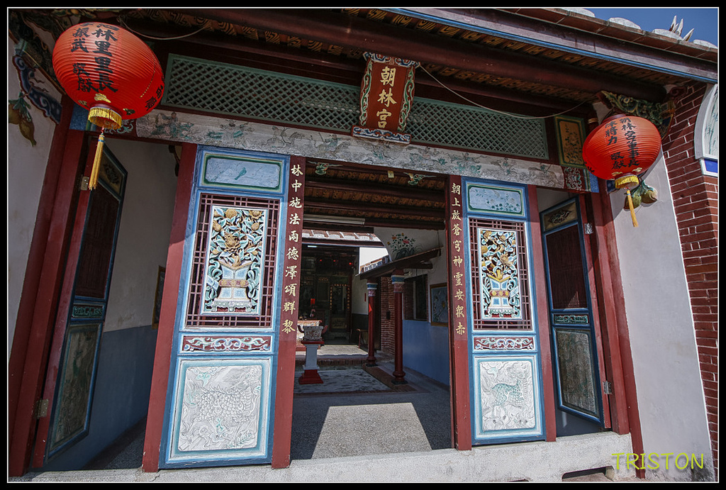 屏東縣潮州鎮泗林里的朝林宮,清乾隆年間興建,迄今約二百多年,2006年指定為縣定古蹟後,曾經大幅整修過,朝林宮為接近正方型的兩殿兩護龍面結構,正殿和護龍間各有一條過水廊