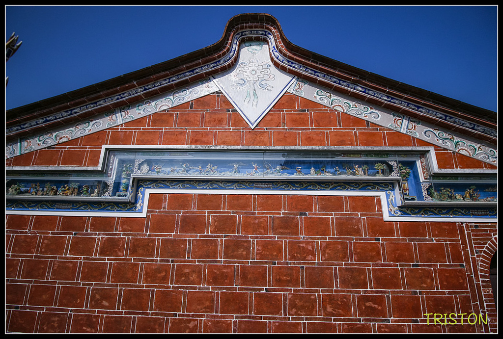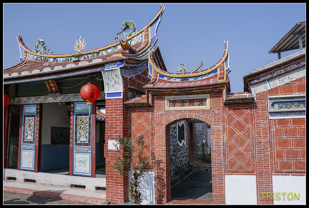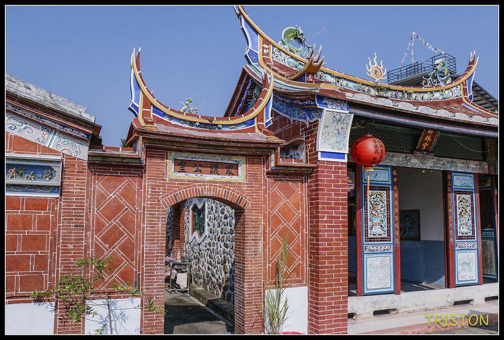 護龍旁卵石為主之亂石砌,兩邊的山牆懸魚是獅頭的造型,右過水廊外牆設有竹節窗牆,內側開口為方形,外觀則為書卷窗