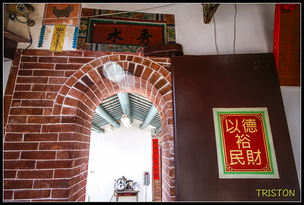 主殿左側門題有山明字樣,右側門則題有水秀字樣,門上對聯寫著"惟豐貽景福、以德裕民財",這通常是道教財神廟的通用對聯,沒想到也會出現在這裡