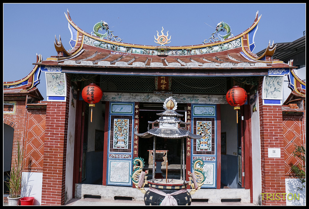 朝林宮原本供奉中壇元帥〈三太子爺〉, 但是日治時期,總督府不准民間供奉男性神明(?),於是廟方只好請來媽祖,其他神明暫由信徒請回家中供奉;這段時間,朝林宮被當做民生及軍用物資倉庫之用。甚至後到最後,被認為是一間客家庄的媽祖廟....若不是了解這段歷史背景,看到廟中的這座石製香爐實在會讓人一頭霧水。