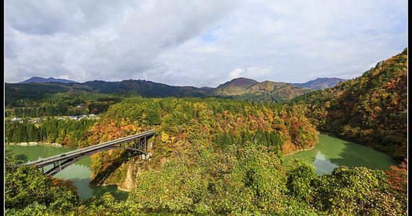 沿著越後山脈而行國道400本身就有極美的風景,前方它在只見川上劃過一道紅虹,進入會津宮下市區和國道252交會,一路往日本海而去