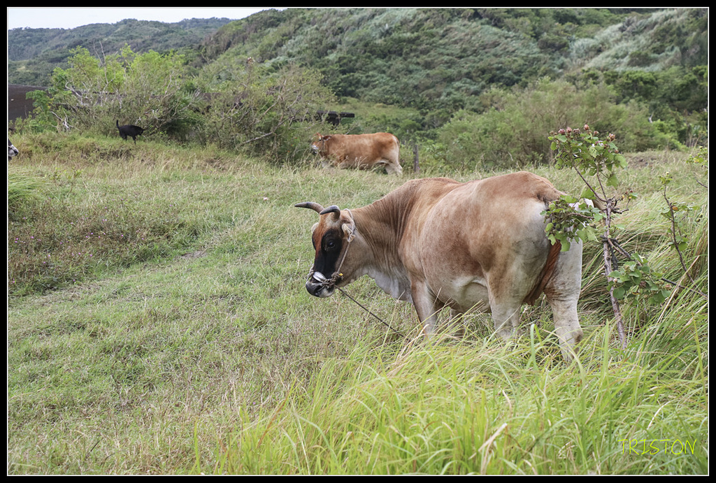 這一大片草地上放養了不少黃牛,據說,這可是真正的台灣黃牛哦!不過那牛角看來也蠻驚人的,我們就不打擾牠用餐了