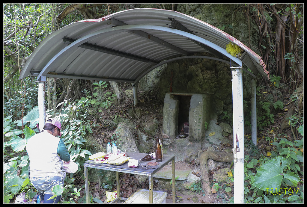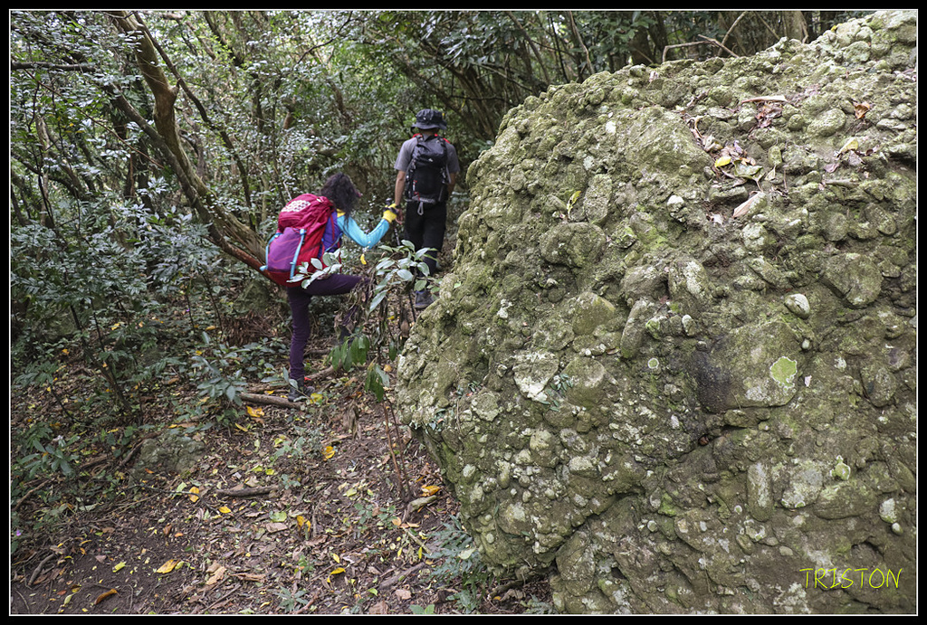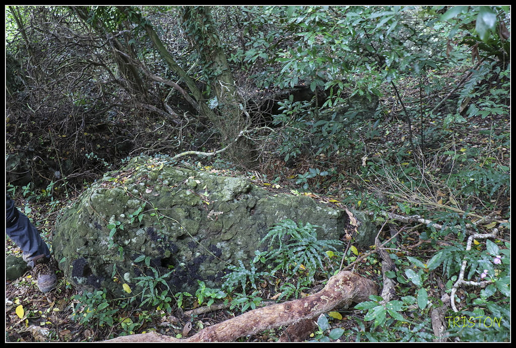 山徑上有座小廟,大石公,香火延續不斷,嚮導也準備了東西祭祀,祈求一路平安,據說這裡是舊的屏鵝公路,巴士可以通行,但現在是一片荒煙蔓草,