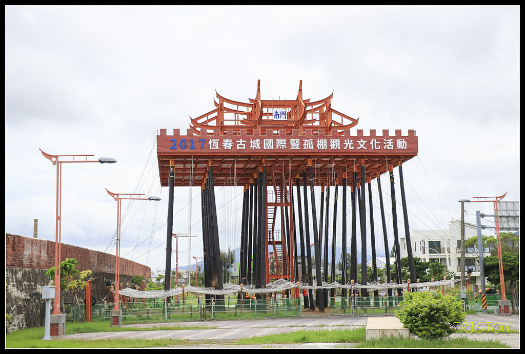 2017年11月11日,光棍節,不敢留在家裡大採購,報名參加東方足跡辦的恆東半島縱走活動,集合地點還是在老地方,恆春東門,恆春東門最有名的就是豎孤棚,每年農曆七月十五日中元節晚間進行,東門現場豎起多根長約三丈六、塗滿牛油的原木,並在原木上再搭建孤棚,由民眾組隊參加搶孤,率先取得孤棚頂端的錦旗者即優勝,藉此宣揚並承續先人人饑己饑、悲天憫人的優良傳統(不懂搶孤和人饑己饑、悲天憫人有何關聯?)