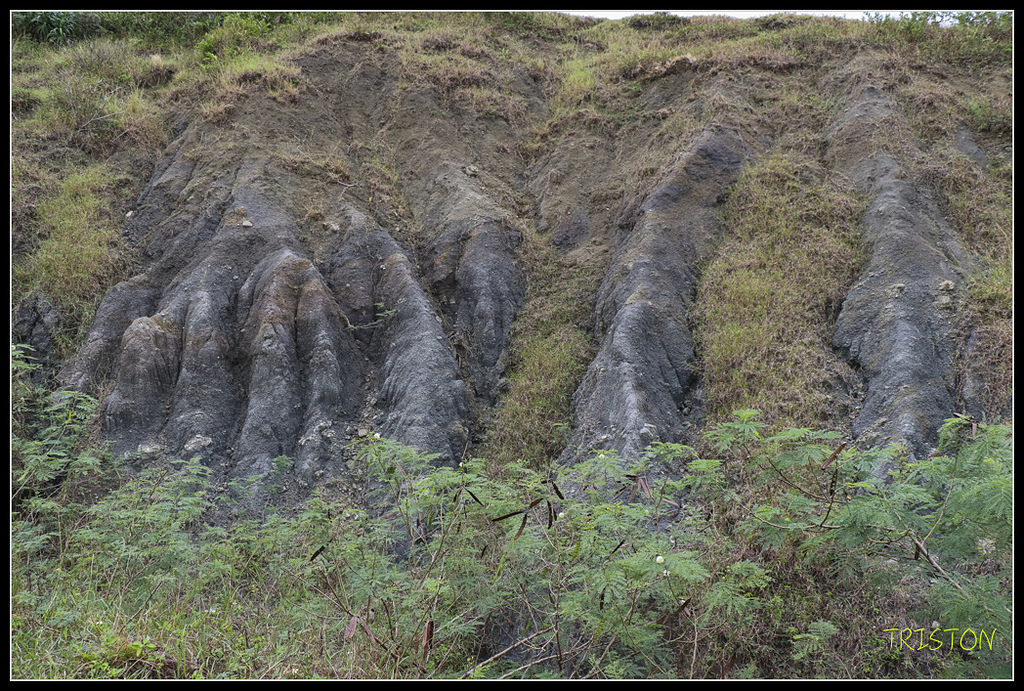 恒春半島的墾丁一帶也有泥岩分佈,稱為「墾丁層」,和高雄田寮和台東利吉的惡地地質類似,其實就因為這些泥岩膠結鬆散,所含較大岩塊,在差異侵蝕之後就形成了大圓山、青蛙石、羊角石、大尖石山、大山母山、小尖石山、門馬羅山、三臺山、虎頭山、南勢湖山、石門山,以及尖山等著名地標;墾丁層是南中國海張裂海洋地殼向菲律賓海板塊隱沒時,在馬尼拉海溝的產物;所以,「墾丁層」會同時具有來自大陸與海洋地殼的礫石與外來岩塊,也因此也將「墾丁層」改稱為「墾丁混同層」